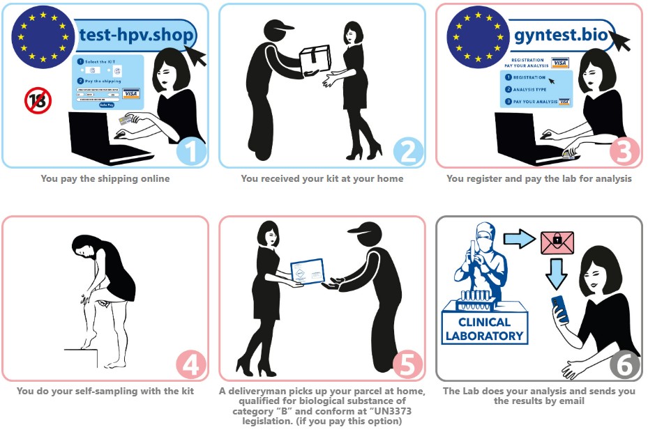 Order a self-sampling kit online (https://test-hpv.shop/en/) and receive it directly at home